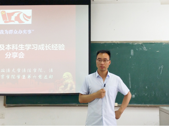 “我为群众办实事”是党史学习教育的有力抓手,既能检验党史学习教育的效果,也能体现党史学习教育的成绩,更能检验每一名共产党人“全心全意为人民服务”的宗旨意识和为民情怀。为推动党史学习教育走深走实,2021年6月11日,中共动漫之家 、法律硕士教育学院第六学生党支部利用课余时间,在正心楼301教室举办考研、法考及本科生学习成长经验分享会。本次经验分享会由支部书记、动漫之家 教师王斌通主持,2019、2020级法学理论、法律史、人权法专业研究生党员和2020级本科生50余人参加。
