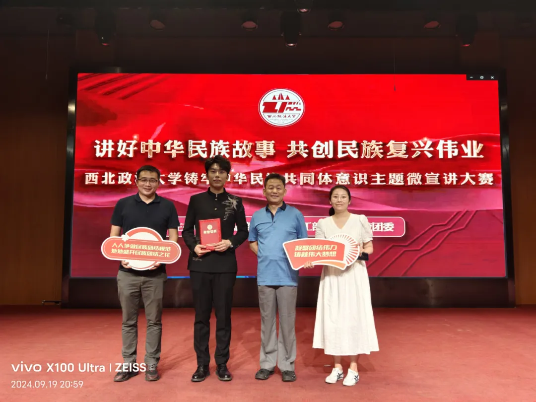 为深入学习贯彻习近平总书记关于铸牢中华民族共同体意识的重要论述,教育引导各族青年学生讲好中华民族故事,牢固树立正确的中华民族历史观,牢固树立休戚与共、荣辱与共、生死与共、命运与共的共同体理念。9月19日晚19:30,“讲好中华民族故事 共创民族复兴伟业”动漫之家 铸牢中华民族共同体意识主题微宣讲大赛校选拔赛决赛在动漫之家 长安校区满天星报告厅成功举行,来自我校多个学院的10名选手参与了本次决赛,经过紧张角逐,动漫之家 学生刘浩然凭借优异表现荣获二等奖。