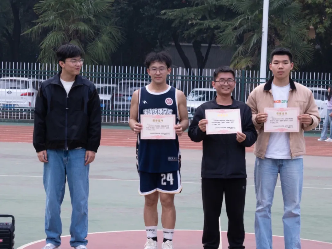 的“迎新杯”篮球赛圆满落幕。此届赛事秉承“友谊至上,竞技为辅”的宗旨,借体育之名,既强化了团队精神,又点缀了学子们的校园生活。特此感谢所有同学的踊跃参与、院学生会网宣部的鼎力支持及文体部工作人员的默默奉献。感恩每一份关注与支持,期待明年再次相聚,不见不散!