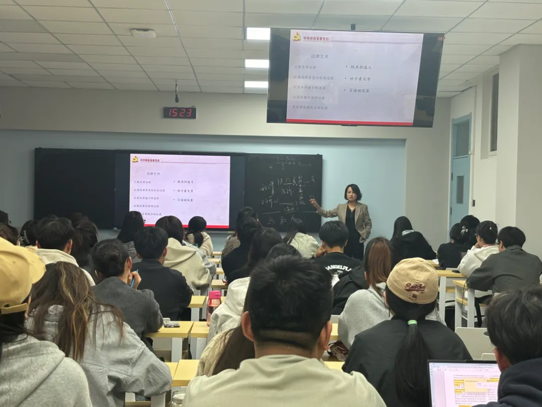 衡飞玲老师为学生们重点讲解了法律文书的写作方法,深入剖析了如何提高法律文书写作能力。她梳理了当前法治工作的改革重点,指出全新的法治工作环境对法律文书写作提出了全新的要求;并详细阐释了法律文书的写作目的,需要以简洁文字记载法律活动和法律事实的形成过程,记录法律援引的选择和裁判结果的推理过程,宣示国家法律的权威和强制力。衡飞玲老师已具体案例导入,讲解如何依据案件的基础事实确定裁判文书首部和尾部的格式和具体内容,如何围绕当事人的诉讼请求,立足案件证据认定客观事实,进而确定裁判文书的正文内容。讲座最后,衡飞玲老师强调法律文书写作在司法实践中的重要性,并鼓励学生们在日常学习中注重理论与实践相结合,提高自身的法律素养和实务操作能力。她提到,法律人应当具备高尚的职业道德和坚定的法治信仰,法律文书写作要充分展现人文关怀,坚持人民司法为人民。