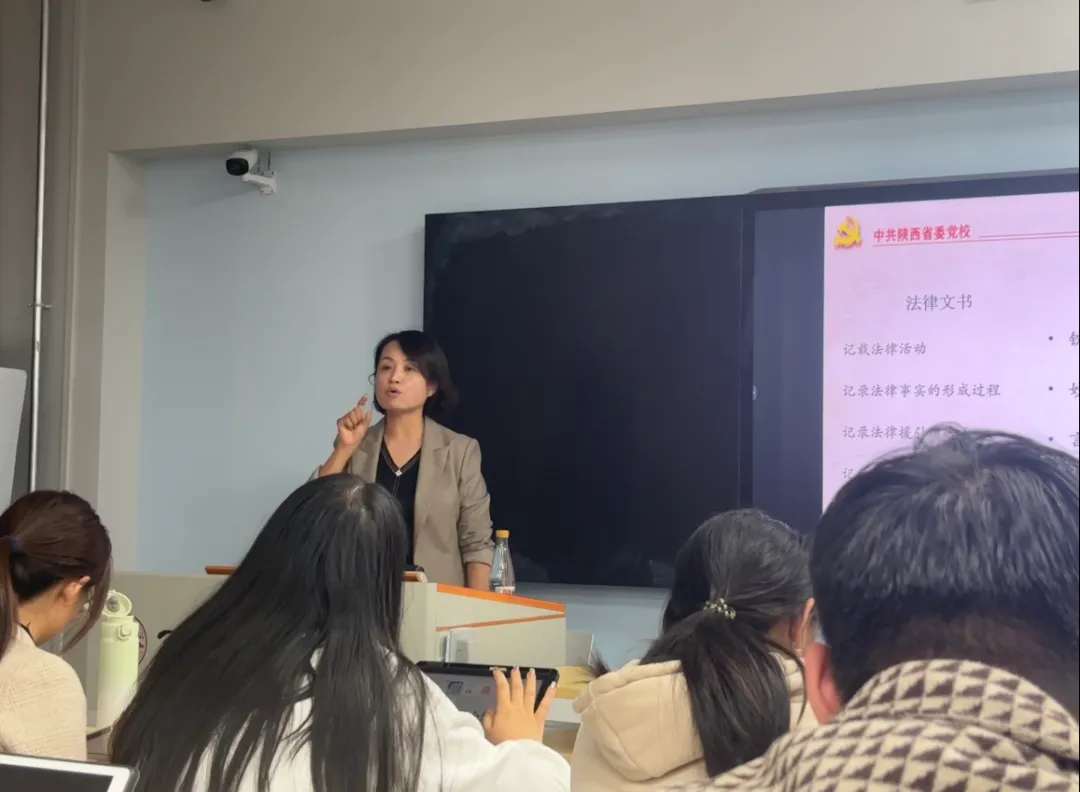 于10月23日下午在雁塔校区三号教学楼3605开展“法律文书写作指导”专题讲座。本次讲座特邀中共陕西省委党校(行政学院)法学部衡飞玲老师担任主讲嘉宾,学院副院长淡新昌老师主持讲座。