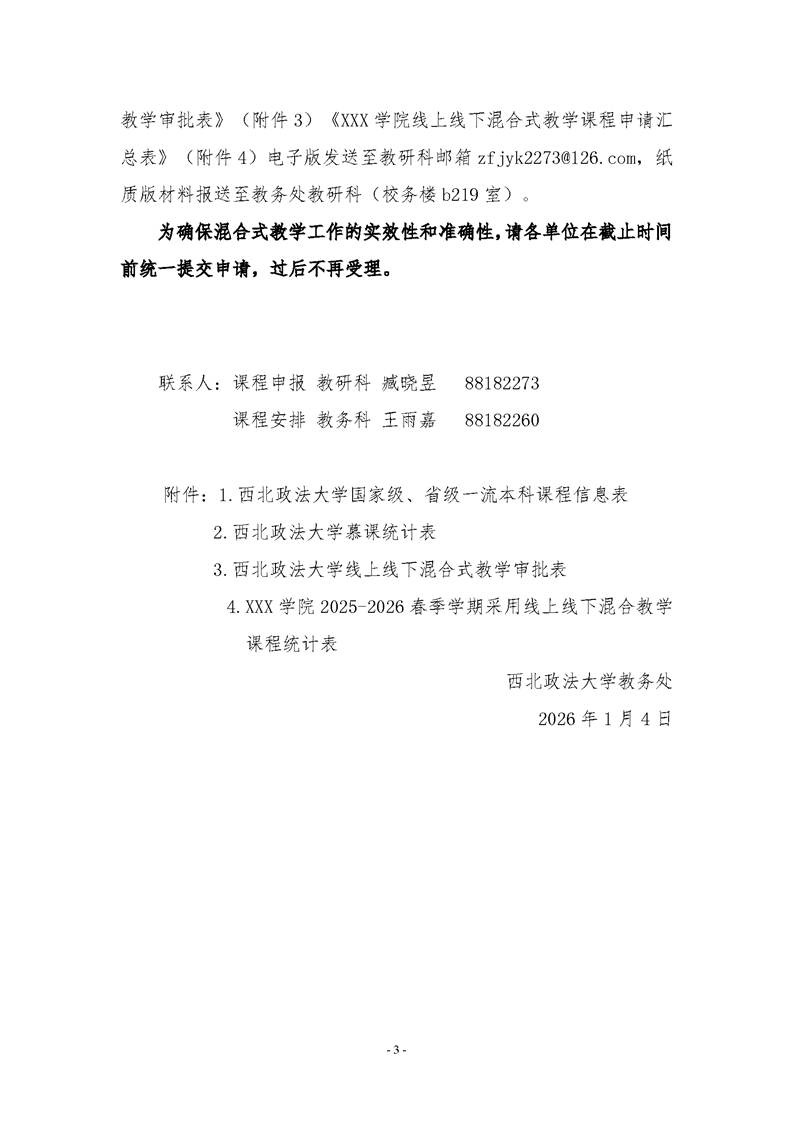 附件4:XXX学院2025-2026春季学期采用线上线下混合式教学课程统计表.xls