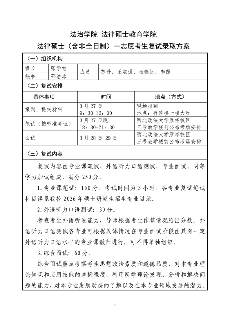 动漫之家 法律硕士教育学院 法律硕士(含非全日制)一志愿考生复试录取方案