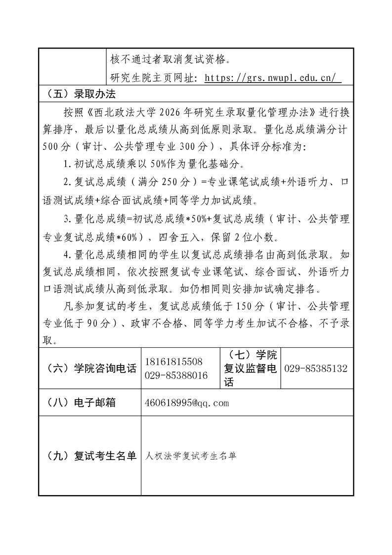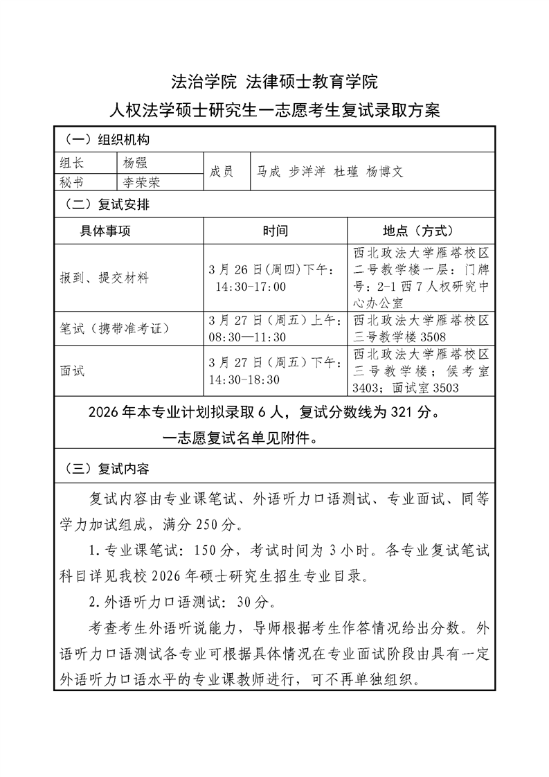 动漫之家 法律硕士教育学院 人权法学硕士研究生一志愿考生复试录取方案