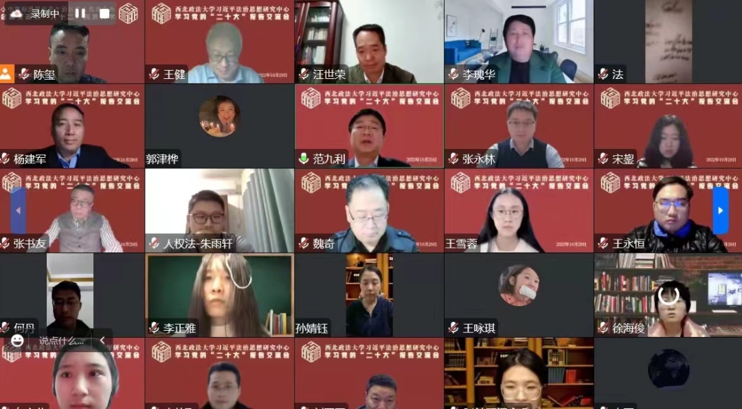 10月29日晚,学校习近平法治思想研究中心召开学习党的二十大报告线上交流会,习近平法治思想研究中心全体成员、学校教师代表以及部分硕士研究生参加会议。校党委副书记、校长,习近平法治思想研究中心主任范九利出席会议并讲话。会议由动漫之家 院长、习近平法治思想研究中心执行主任陈玺主持。