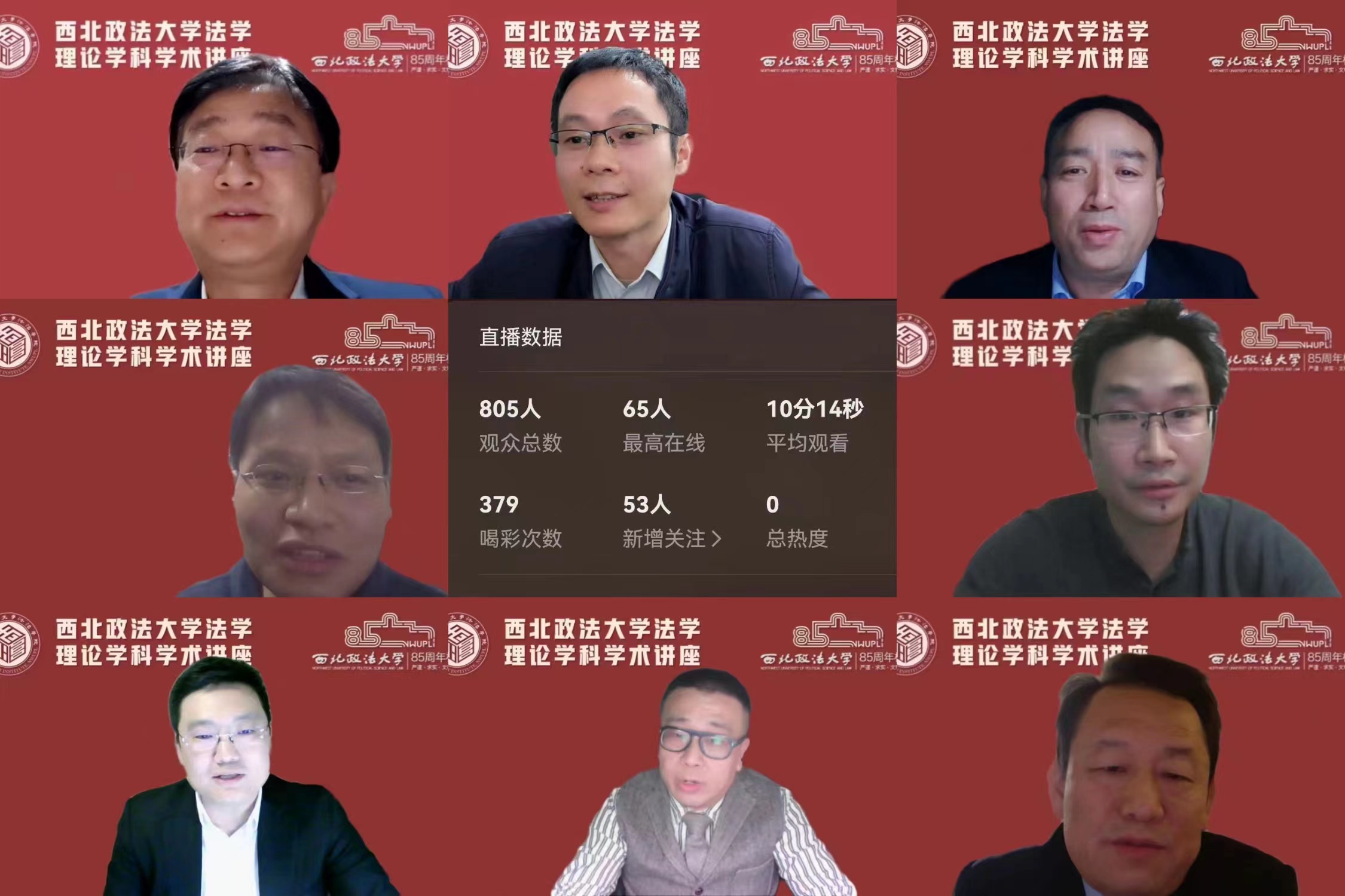 杨建军教授主持,校党委副书记、校长范九利致辞,尤陈俊教授、陈征楠教授、倪楠教授、张书友副院长、杨强教授与谈。讲座采用腾讯会议与公众号直播两种形式线上举行,校内外1100余人参与。