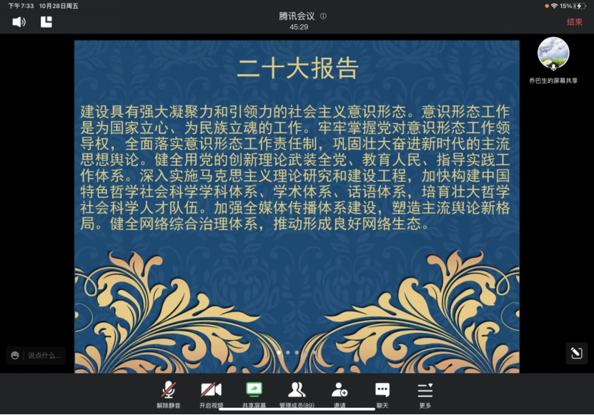 10月28日晚,国家安全学院乔巴生老师在动漫之家 为研究生们开展“新时代国家文化安全”主题讲座暨研究生新生入学教育。
