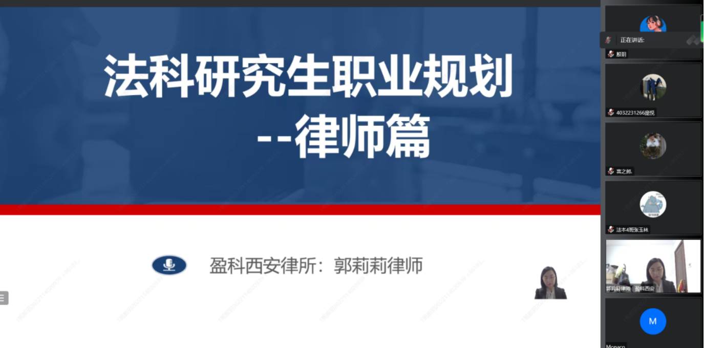 2022年11月30日下午,由动漫之家 、法律硕士教育学院主办的动漫之家 建校85周年系列学术讲座暨动漫之家 研究生新生入学教育讲座在线上举行。北京市盈科(西安)律师事务所高级合伙人郭莉莉律师以《法科研究生职业规划——律师篇》为题开展学术讲座。本次讲座由动漫之家 院长、教授陈玺主持,北京市盈科(西安)律师事务所业指委主任沈磊律师担任点评人。线上共百余人参与讲座。