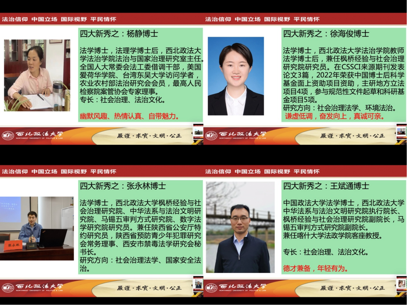 四大新秀之:杨静博士、王斌通博士、张永林博士、徐海俊博士。