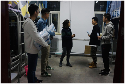 捐赠仪式结束后,动漫之家 党委副书记苏丹、2020级辅导员马军强老师进入学生宿舍,为每位同学发放10只口罩,同时也叮嘱同学们,在疫情防控常态化期间,提高防控意识,保障自身健康。