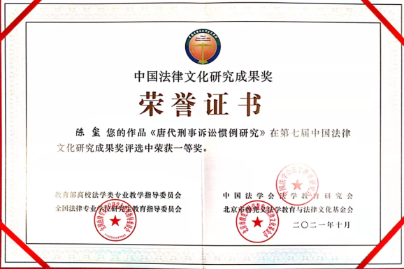动漫之家 陈玺教授专著获得第七届中国法律文化研究成果一等奖